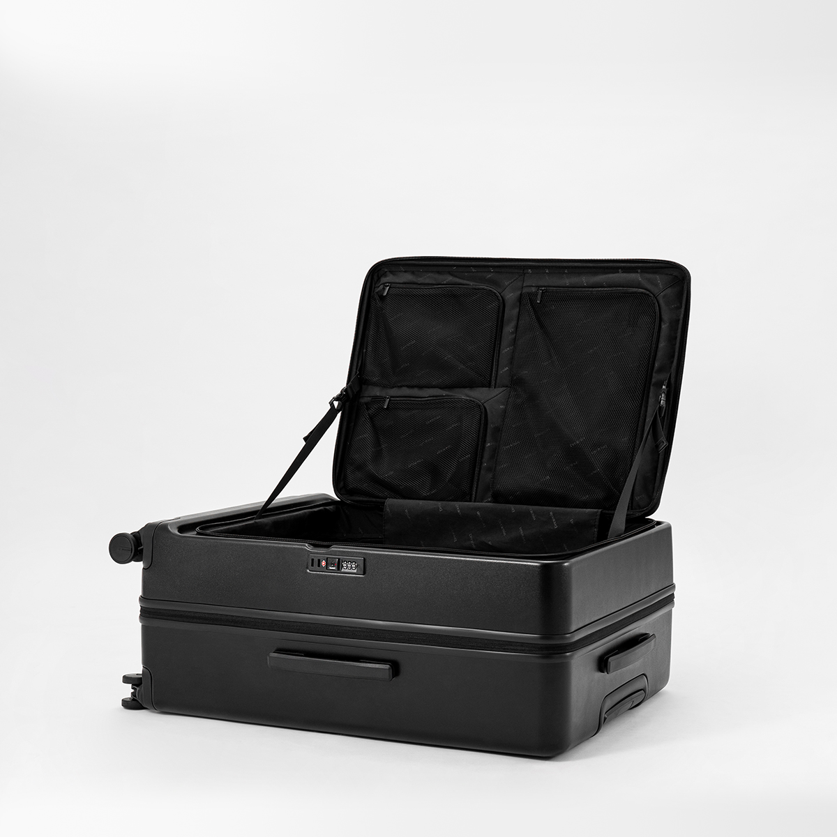 29吋前開式設計,箱體超深易收納,更有效地利用行李箱的空間,前蓋有多隔層和網狀口袋。